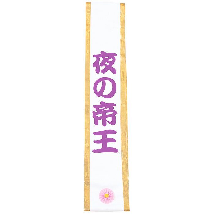 タスキ 夜の帝王宴会のド定番!!肩から掛けるだけ、とことん盛り上がろう!●内容:タスキ●素材:ポリエステル100%●寸法 (約cm):幅14.5、長さ77(周囲154)■出荷の目安・・・商品名及び商品選択欄に記載がございますのでそちらをご確認ください。