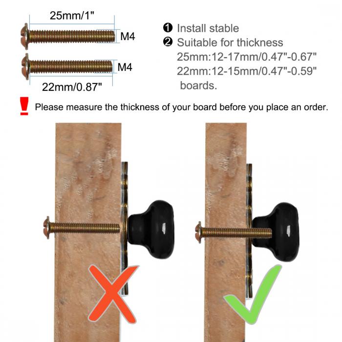 スキュースレッド長さ:25mm、 22mm、ボード厚さ:12-17mm、12-15mm【属性3】パッケージ内容:6×セラミック製ノブ、12×スキュー。