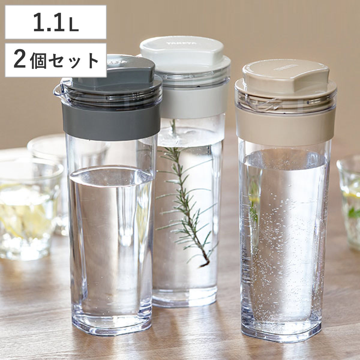 スリムジャグ Ver.2 1.1L 2本セット TAKEYA タケヤ 通販 1100ml 2個 冷水筒 約1L ピッチャー 約1リットル 横置きOK 縦置き タテヨコ 縦横 広口 洗いやすい シンプル おしゃれ 冷水ポット 麦茶ポット 耐熱 熱湯OK ドアポケット ヨコ置き対応 スリム プラスチック