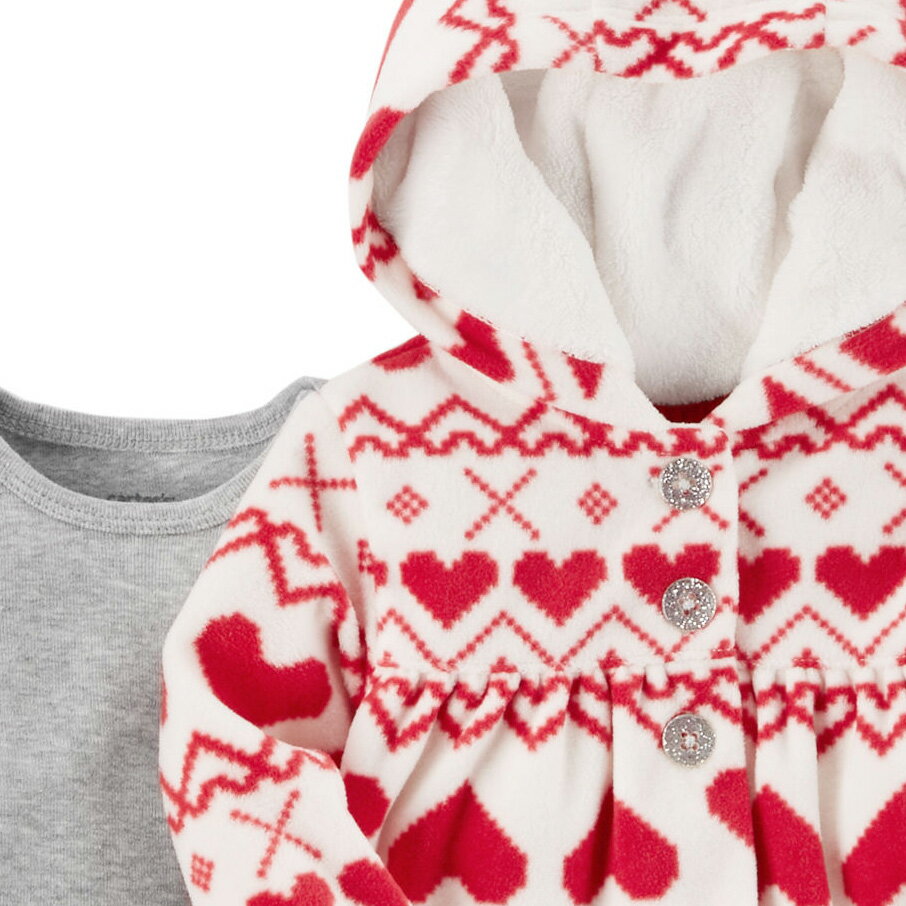 カーターズ Carter's 3点セットアップ 長袖 パーカー カーディガン&パンツ&半袖ボディスーツ ハート フリース 6m9m12m18m24m