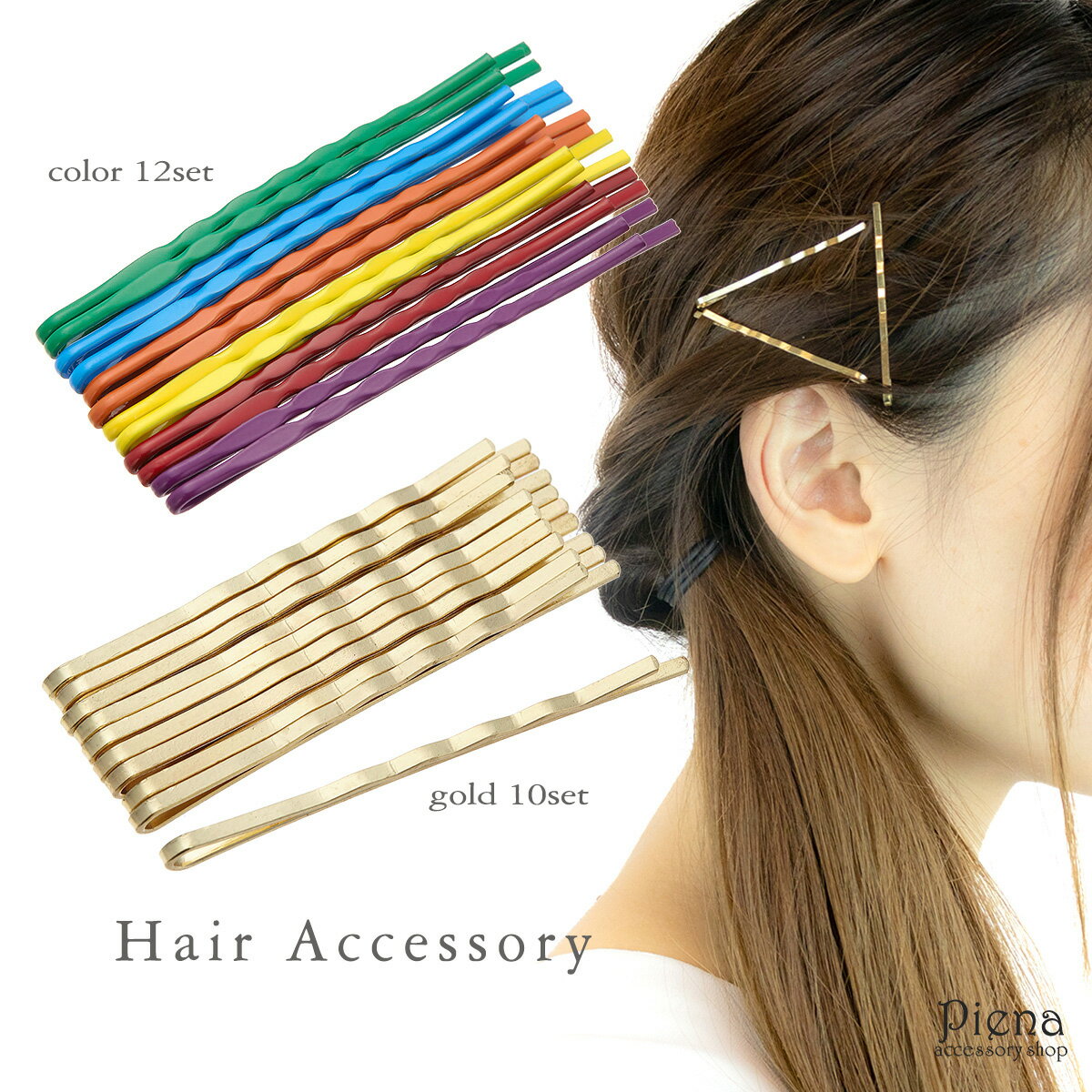 ヘアピン レディース ヘアアクセサリー 10本セット 12本セット カラーピン 定番 髪留め キラキラ パステル メタル かわいい オフィススタイル デイリー グリーン ブルー オレンジ イエロー レッド パープル ゴールド プレゼント ギフト